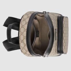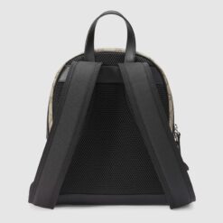 Canvas backpack, finished with black leather details and rubberized hardware.