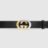 The House GG monogram in its emblematic beige/ebony color combination is matched with black leather in this belt introduced for Pre-Fall 2020. The Double G buckle with an aged finish completes the accessory.