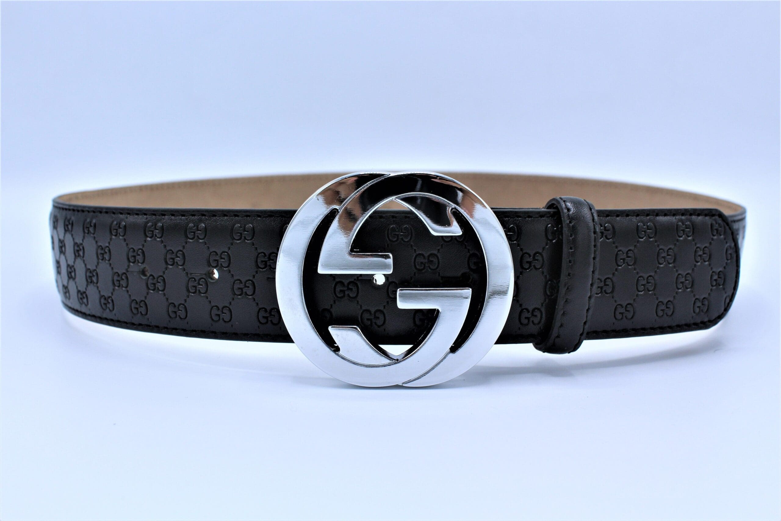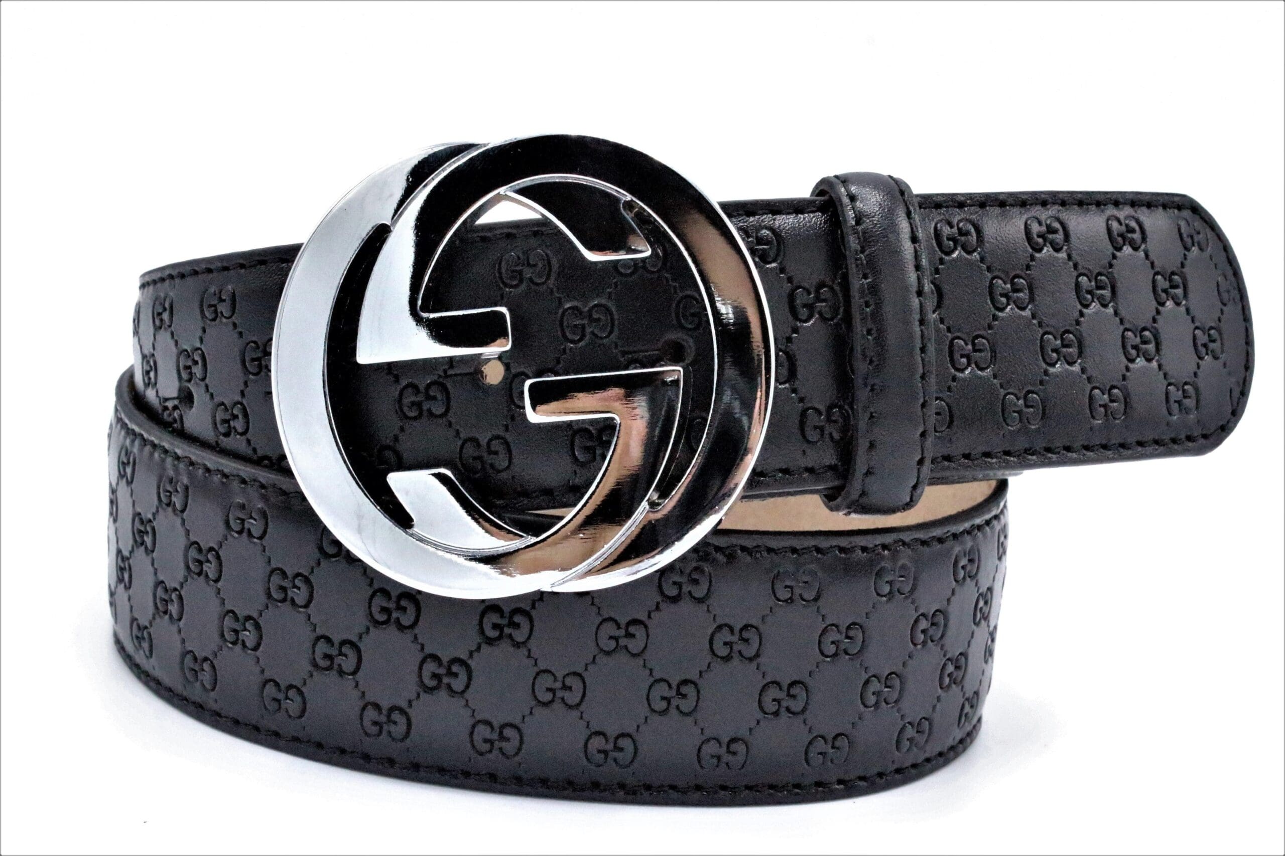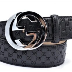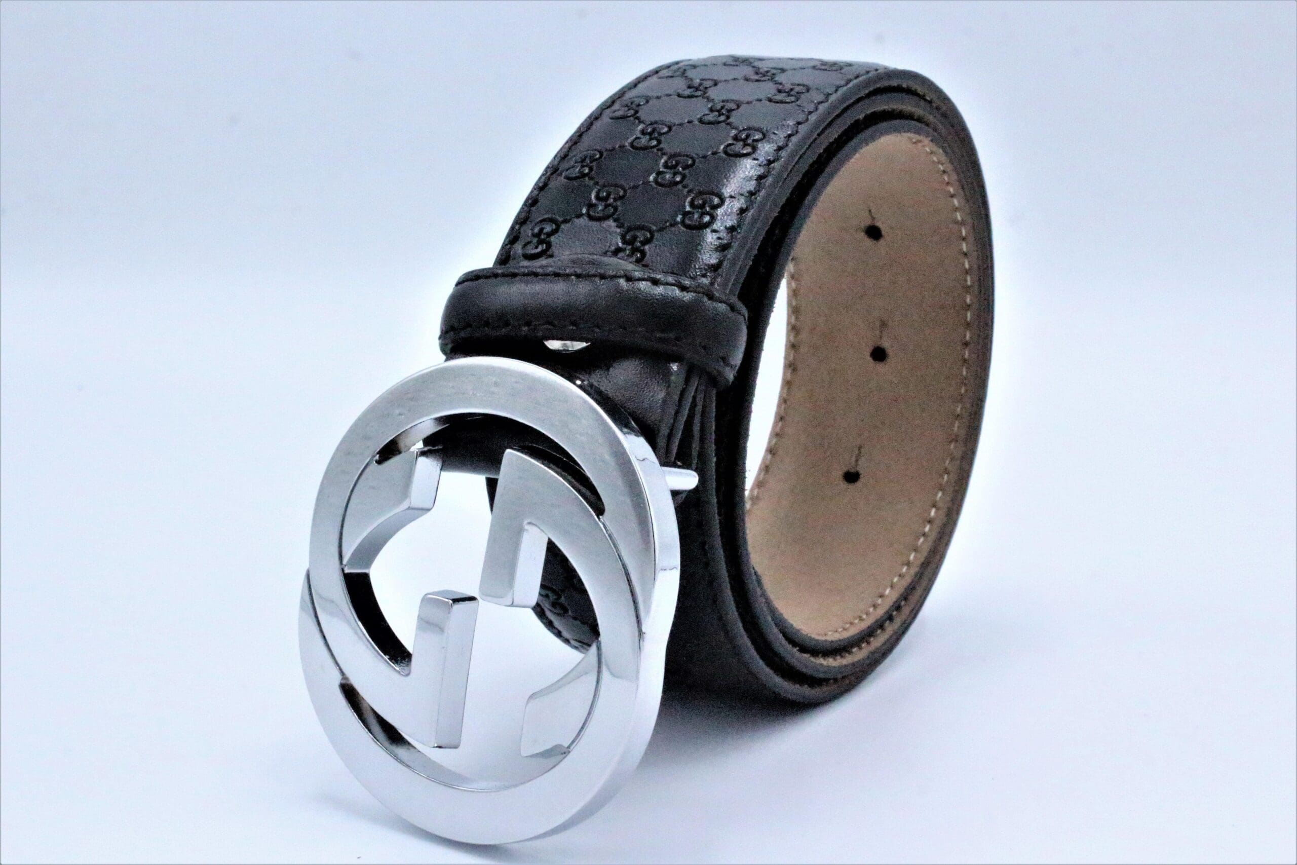 The Interlocking G buckle belt, made in heat debossed Gucci Signature leather with a defined print and firm texture.
