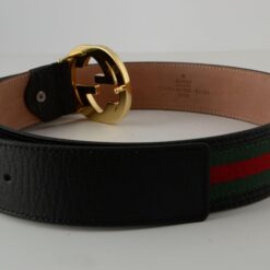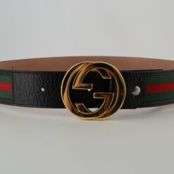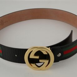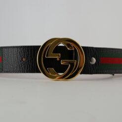 The Gucci Red Green Stripe Belt with Gold Buckle is a luxurious accessory that seamlessly blends Gucci’s iconic design with premium craftsmanship.