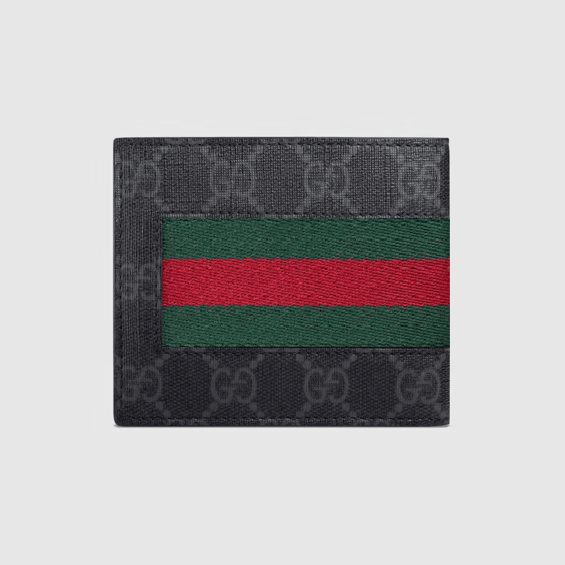 A combination of two of Gucci’s most recognisable icons: the GG motif and the Web. This bi-fold wallet is made in GG Supreme canvas with House Web stripe.