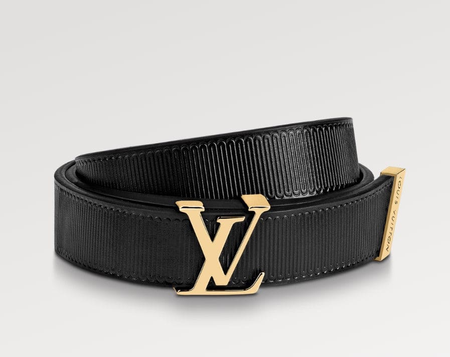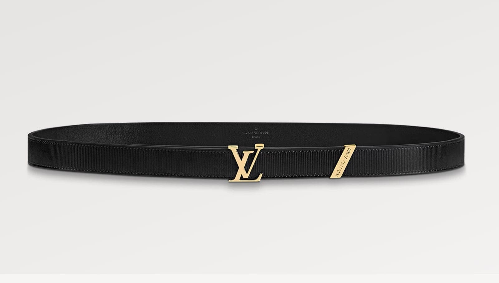 This timeless elegant black evening belt is embossed with a pattern recalling the gros grain ribbon used in couture. The LV Initiales buckle in shiny gold metal complements this sophisticated design, which will enhance any outfit.