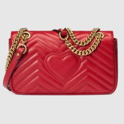 The small GG Marmont chain shoulder bag has a softly structured shape and an oversized flap closure with Double G hardware. Made in matelassé chevron leather with a heart on the back.