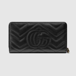 A GG Marmont wallet made in matelassé leather with a chevron design and GG on the back.