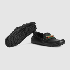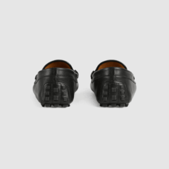 A reiteration of the classic style, the driver is presented in black leather with a flexible construction. In a mix of emblematic House details, the shoe is defined by the Web and Interlocking G Horsebit enriched with colored enamel.