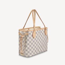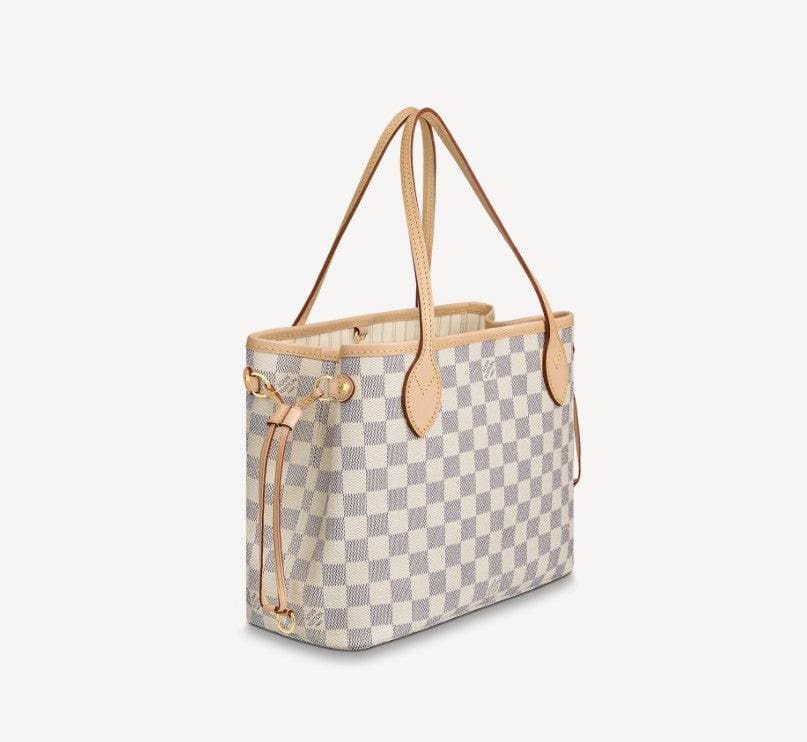 The Louis Vuitton Neverfull PM Small Damier Azur is a luxurious yet practical tote bag. Made from the iconic Damier Azur canvas with leather trim, this designer bag is perfect for both casual and formal occasions. Spacious and stylish, it is an essential accessory for any wardrobe.