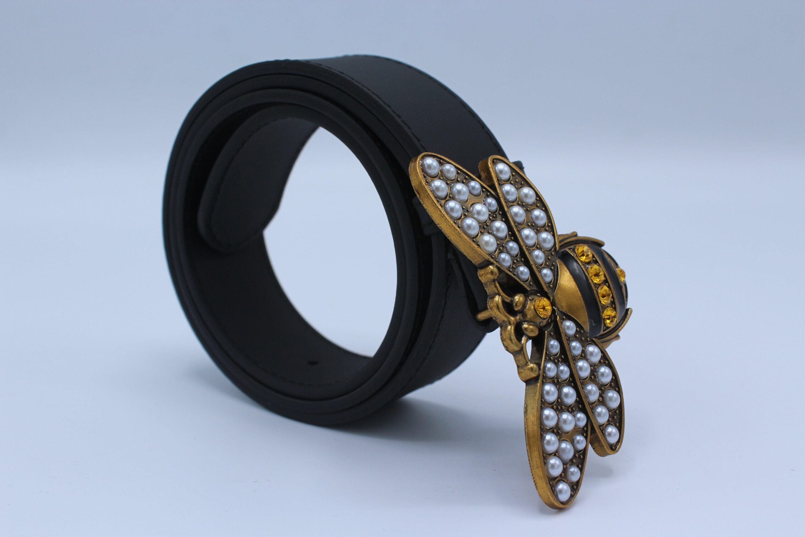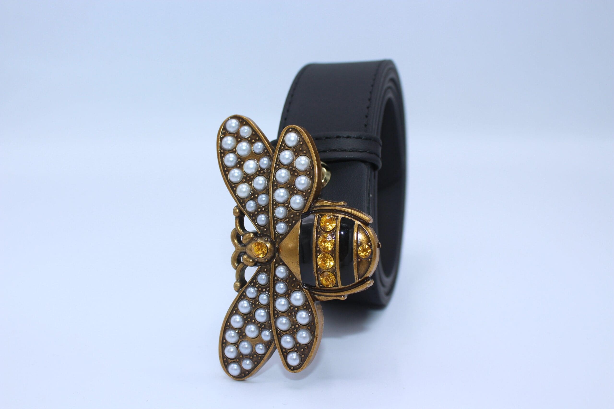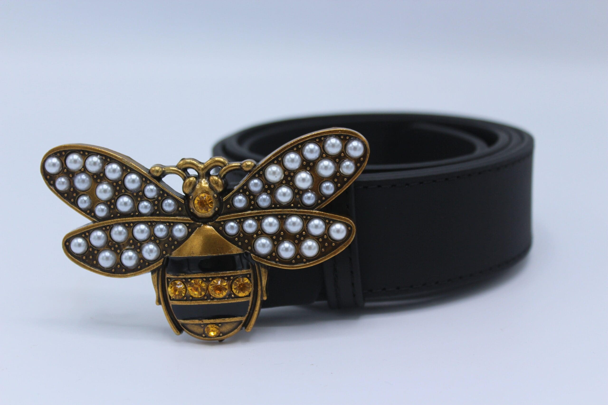 Perfect Bee Figured Black Leather Belt