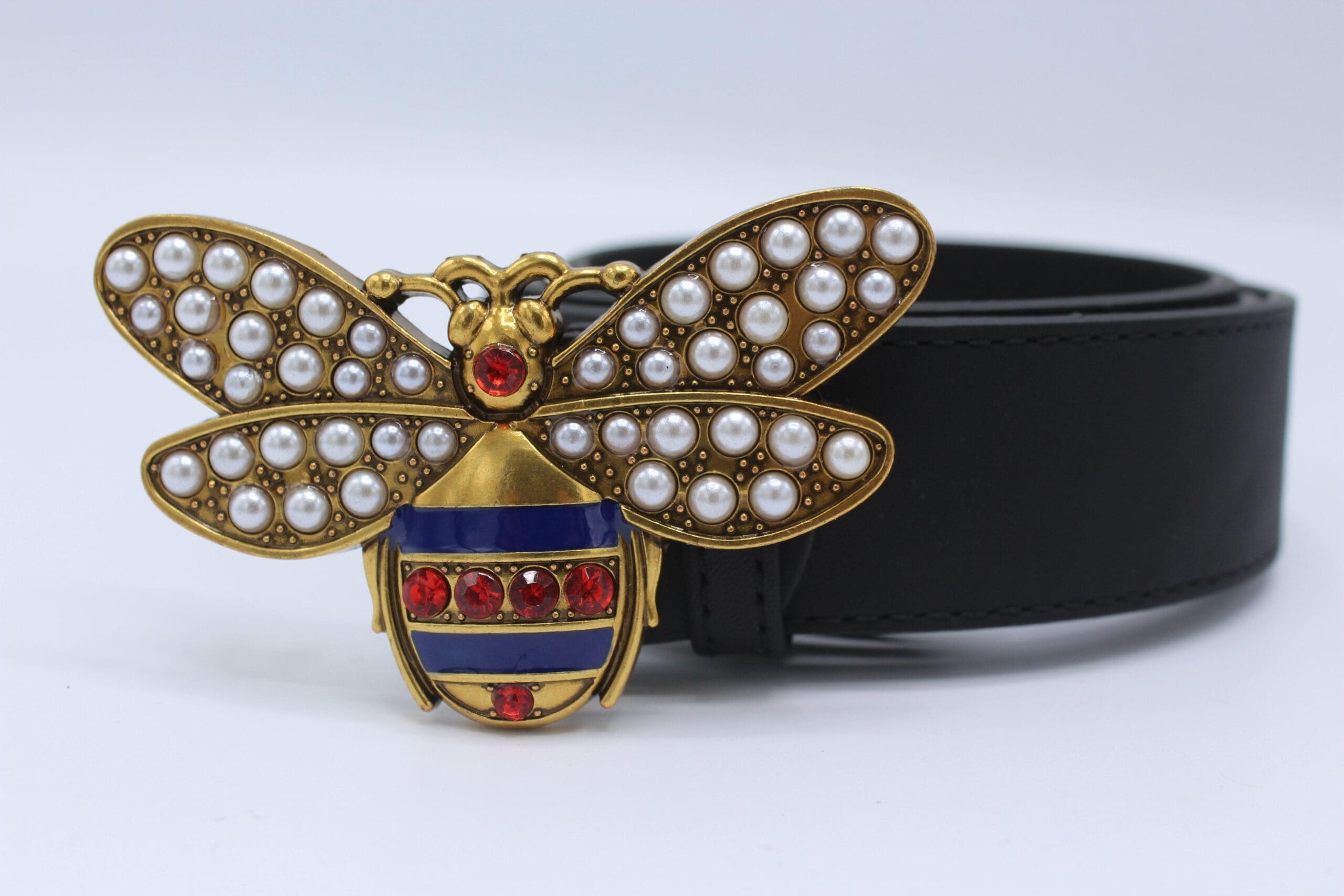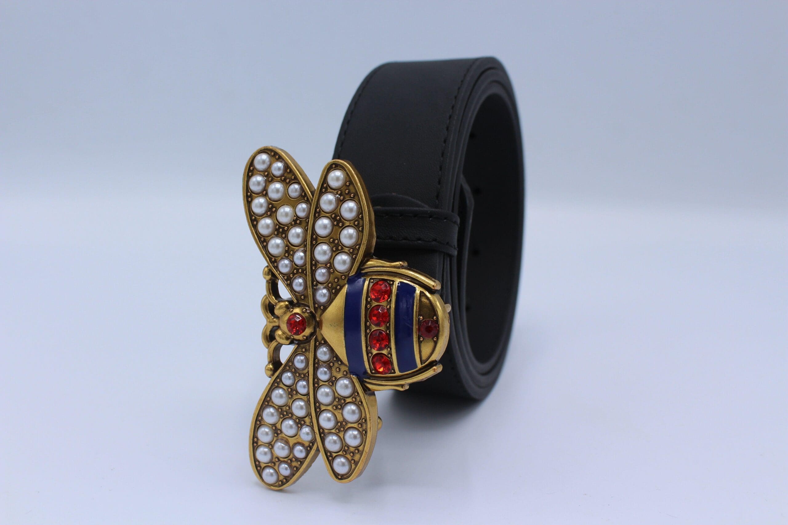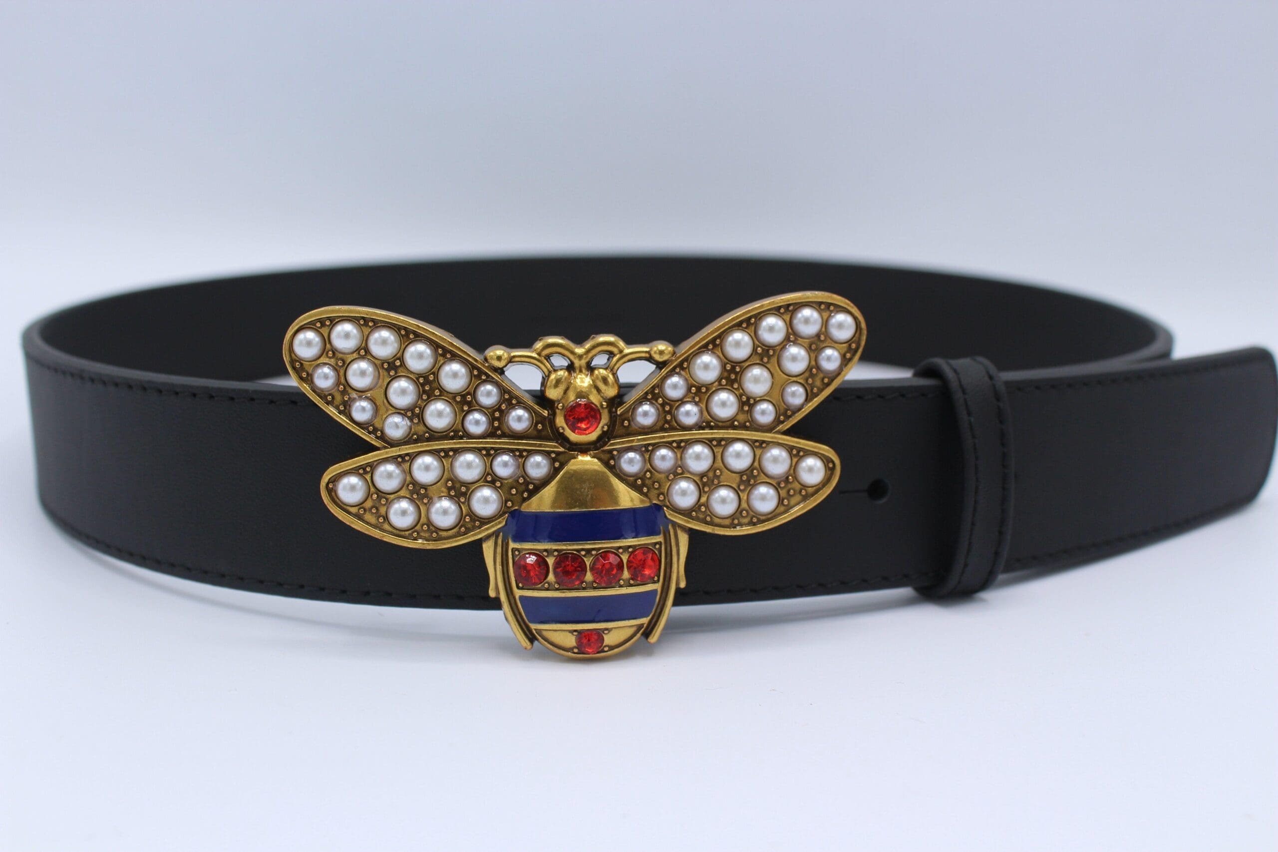 Perfect Bee Figured Black Leather Belt
