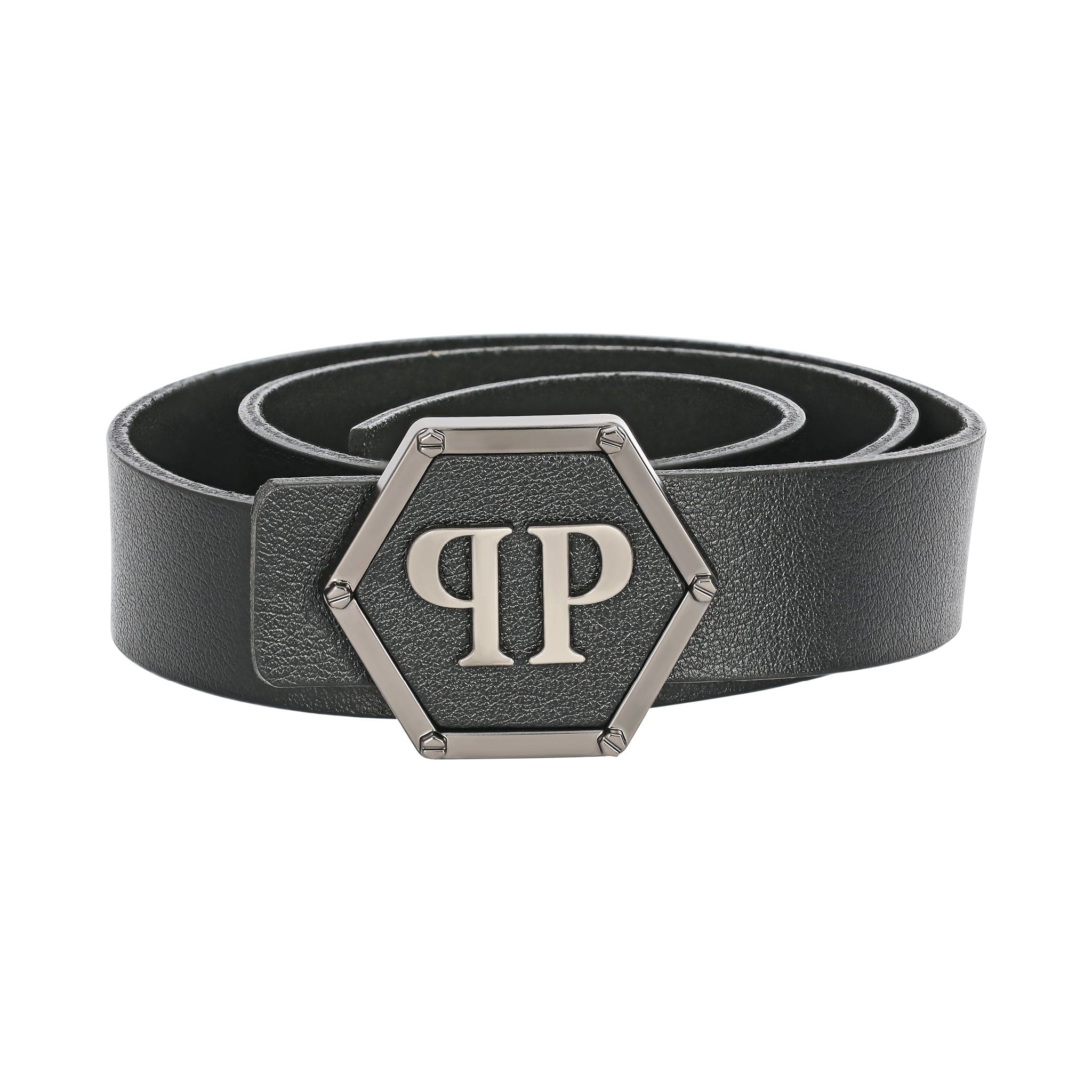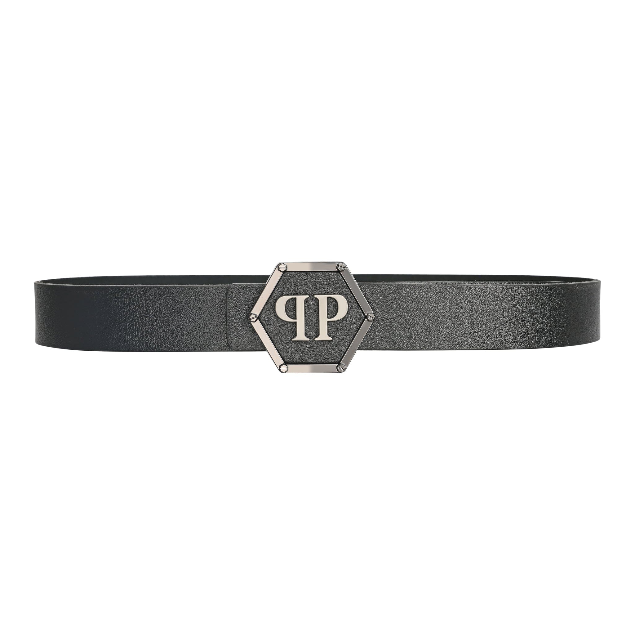 Deer-print leather belt. Metal and leather PP Hexagon buckle. Nubuck lining. Height: 4 cm.