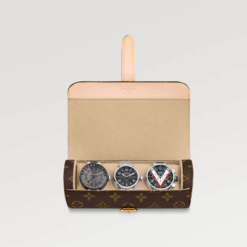 The Louis Vuitton Watch Case Brown Monogram is the perfect storage solution for your watches. This case can hold up to three men’s or four women’s watches, and is crafted from Monogram canvas with natural cowhide trimmings. The soft microfiber lining ensures your timepieces stay protected from scratches. With golden brass pieces and a stylish design, it’s the ideal accessory for any watch enthusiast. Whether for travel or home storage, this case provides luxury and safety.